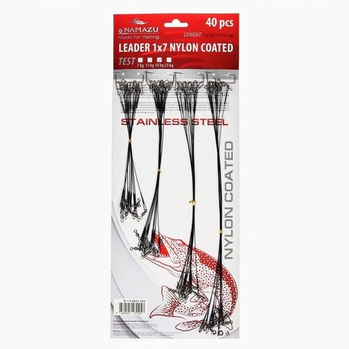 Namazu Поводки стальные NAMAZU Leader 1х7 Nylon Coated, тест 18 кг, 15/20/25/30 см, чёрные, 20 шт.