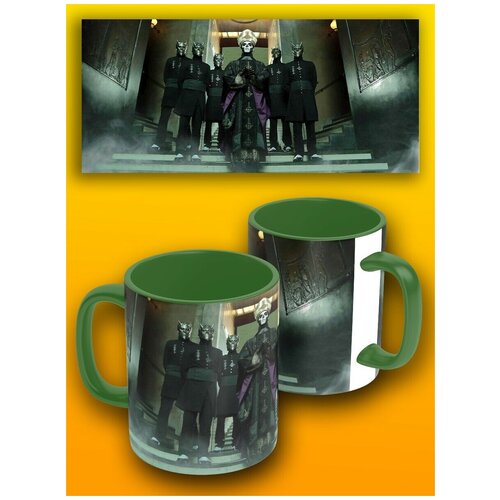 Кружка, 330 мл с принтом зеленая музыка ghost тобиас форге, papa emeritus, nameless ghouls - 6674