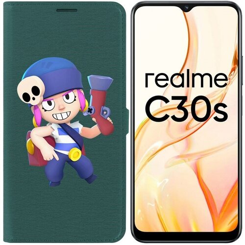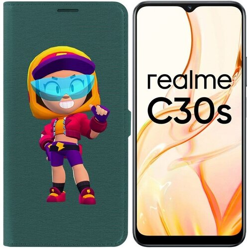 Чехол-книжка Krutoff Eco Book для Realme C30s Brawl Stars-Пенни (зелёный опал)