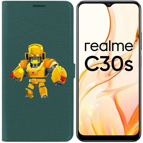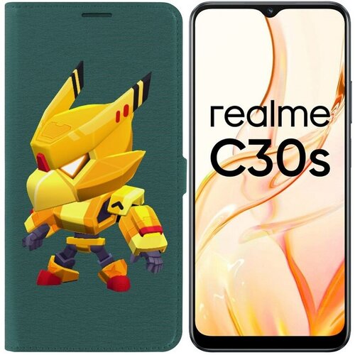 Чехол-книжка Krutoff Eco Book для Realme C30s Brawl Stars-Бо Золотой Меха (зелёный опал)