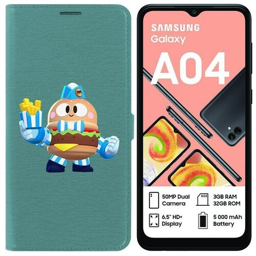Чехол-книжка Krutoff Eco Book для Samsung Galaxy A04 (A045) Brawl Stars-Бургер Лу (зелёный опал)
