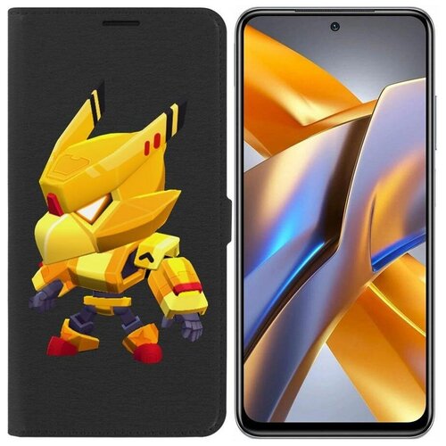 Чехол-книжка Krutoff Eco Book для Xiaomi Poco M5s Brawl Stars-Ворон Золотой Меха (черный)