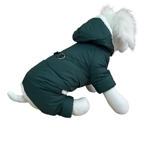 Комбинезон для собак со шлейкой, мех, зеленый, размер L