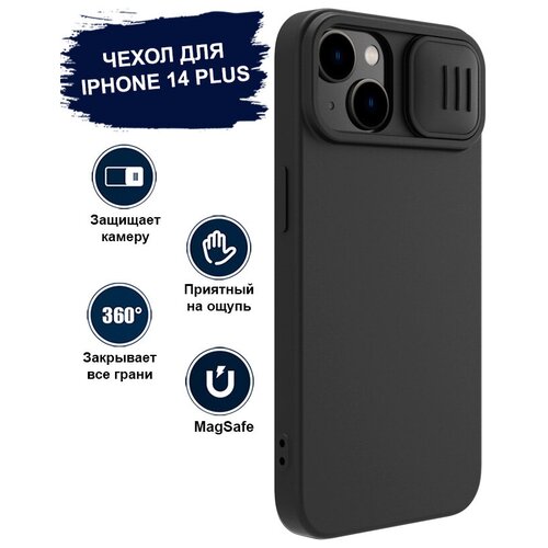 Чехол для телефона iPhone 14 Plus Nillkin CamShield Silky Magnetic Silicone Case MagSafe черный силиконовый с защитой камеры