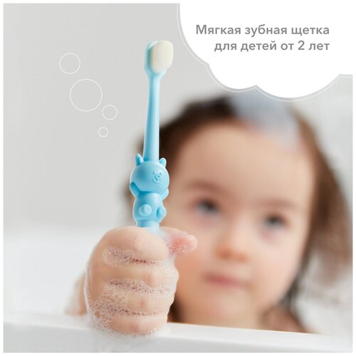 20009 Щетка зубная детская Happy Baby для первых зудов, мягкая щетина с ограничителем, медведь голубой