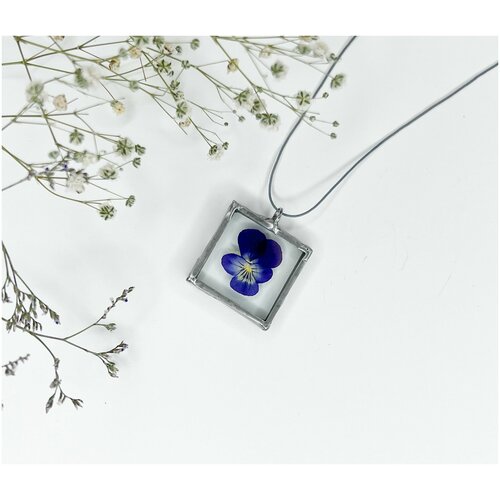 Подвеска на шею с анютиными глазками на шнурке / Кулон для девушек с сухоцветами / "Forget-me-not" / 3*3 см
