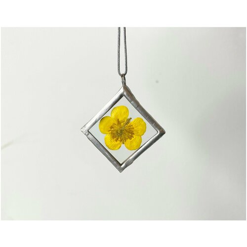 Подвеска на шею с лютиком на шнурке / Кулон для девушек с сухоцветами / "Forget-me-not" / 2,5*2,5 см