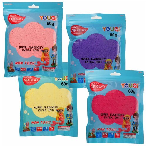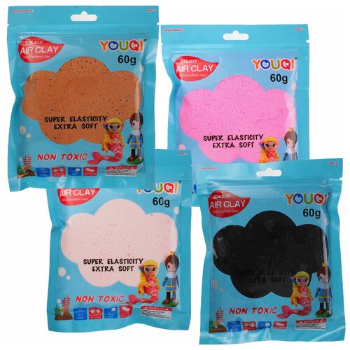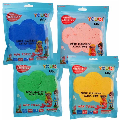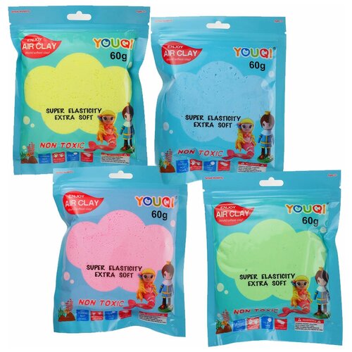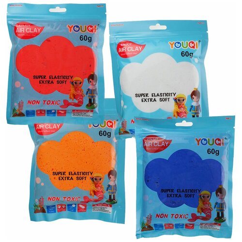 Глина полимерная воздушная самозатвердевающая эластичная YOUQI 60г арт. NT-6016 / Воздушный пластилин / Набор 4 шт.