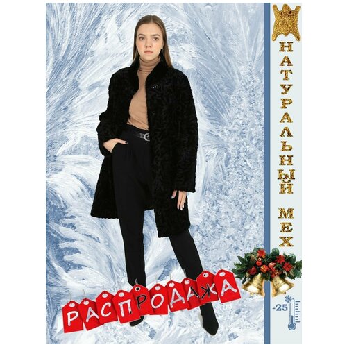 Шуба женская, натуральный мех овчина (мутон), 001/ГЮ, цвет - черный, размер 56