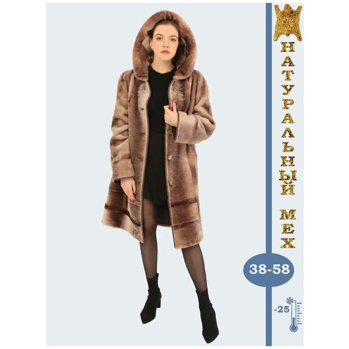 Шуба женская, натуральный мех овчина (мутон), 001/ГЮ, цвет - горький-шоколад, размер 52