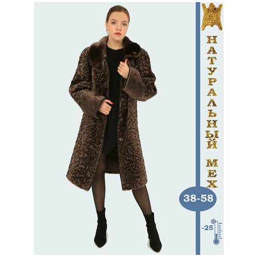 Шуба женская, натуральный мех овчина (мутон), М-1/ГЮ, коричневый крайола (уголь), размер 54