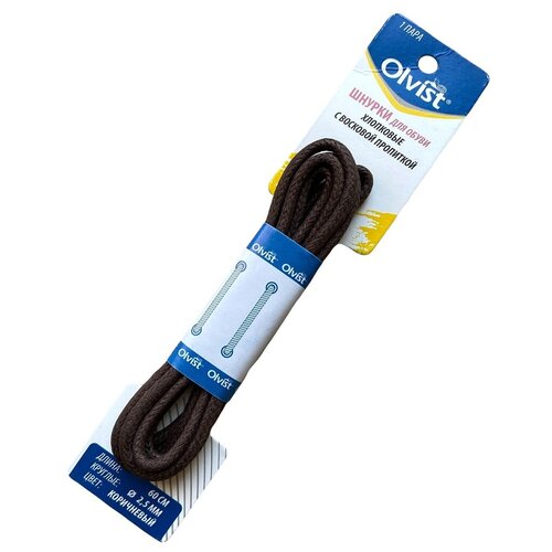 Круглые тонкие шнурки 75 см, коричневые. Хлопок с пропиткой.