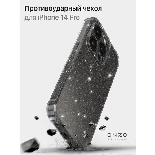 Чехол ONZO CHIC для Apple iPhone 14 Pro Max, темный-прозрачный (серебряные блестки)