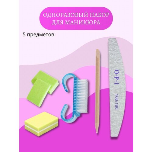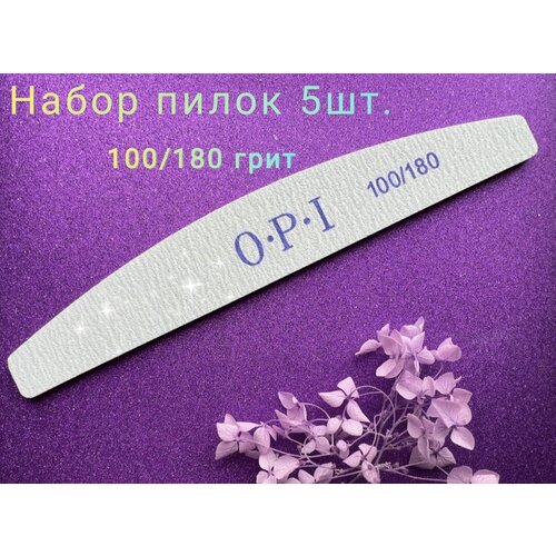 Пилки для ногтей OPI 100/180 полумесяц, 5 шт./ пилки для маникюра и педикюра/Набор для маникюра