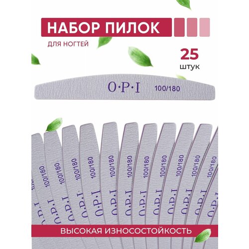 Пилки для ногтей OPI, серые, 100/180 грит, лодка, лодочка, овал, полумесяц, 180 мм, 25 шт., набор, пилки, пилочки для маникюра