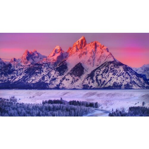 Картина на холсте 40x60 LinxOne "Alpenglow on grand teton" интерьер для дома / декор на стену / дизайн
