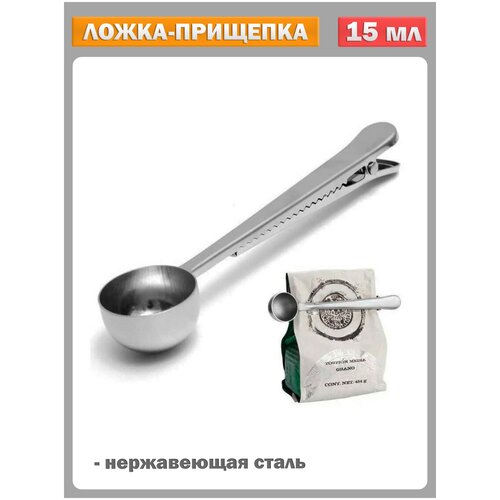 Мерная ложка с зажимом, 15 мл из нержавеющей стали. Ложка-прищепка для кофе и чая