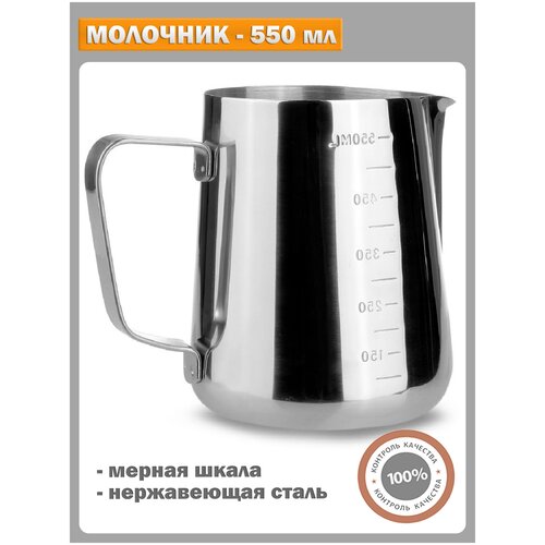 Молочник, питчер для взбивания молока, мерная шкала, пищевая нержавеющей сталь 550 мл