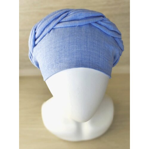 чалма бандана косынка женская на резинке, однотонная лён коса голубой