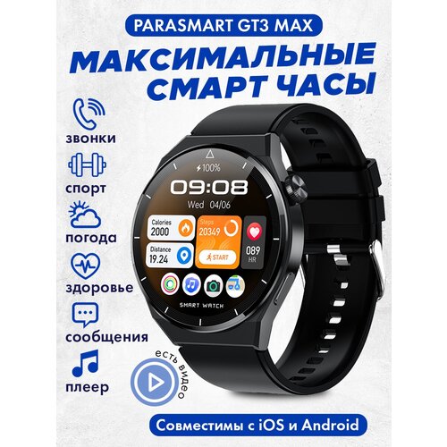 Смарт часы мужские Microwear GT3 MAX с функцией звонка, спортивный фитнес браслет с измерением давления, пульса, ЭКГ и SpO2 (черный силикон)