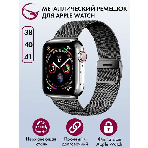 Металлический ремешок для Apple Watch 38 40 41 мм, гибкий сетчатый браслет для часов из нержавеющей стали PARASMART Mesh (черный)