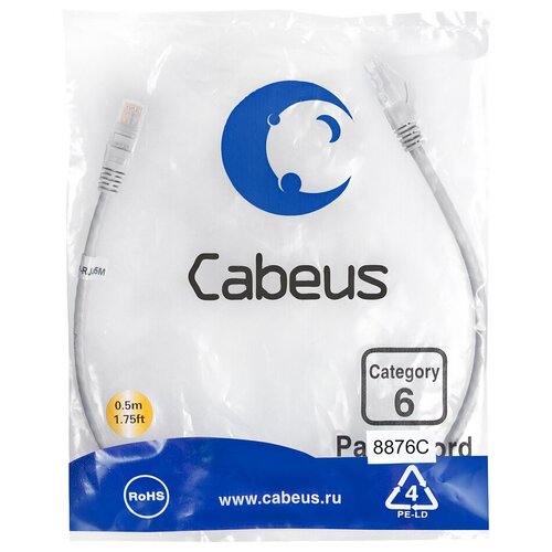 Патч-корд Cabeus PC-UTP-RJ45-Cat.6-0.5m-LSZH Кат.6 0.5 м серый