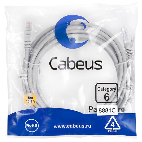 Патч-корд Cabeus PC-UTP-RJ45-Cat.6-5m-LSZH Кат.6 5 м серый