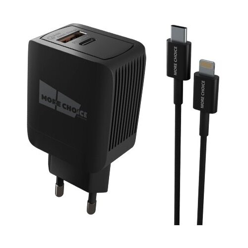 Зарядное устройство СЗУ Smart 2USB 3.0A PD 20W+QC3.0 быстрая зарядка для Lighting Type-C More choice NC71Si (Black)
