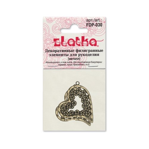 Zlatka Филигранные элементы FDP-030 2.5 см сердце 4 шт под античную бронзу