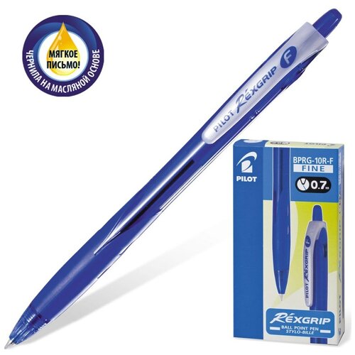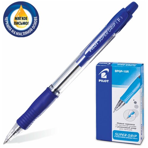 Ручка шариковая масляная автоматическая с грипом PILOT "Super Grip", синяя, узел 0,7 мм, линия письма 0,32 мм, BPGP-10R, BPGP-10R-F,М
