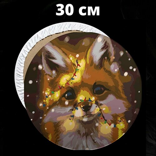 Картина по номерам "Лиса в гирляднах" Круглая диаметр 30 см на подрамнике