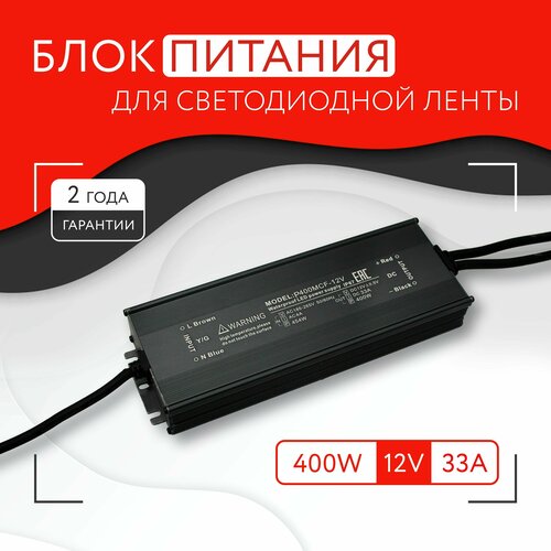 Блок питания для светодиодной ленты (400W, 12V, IP67)