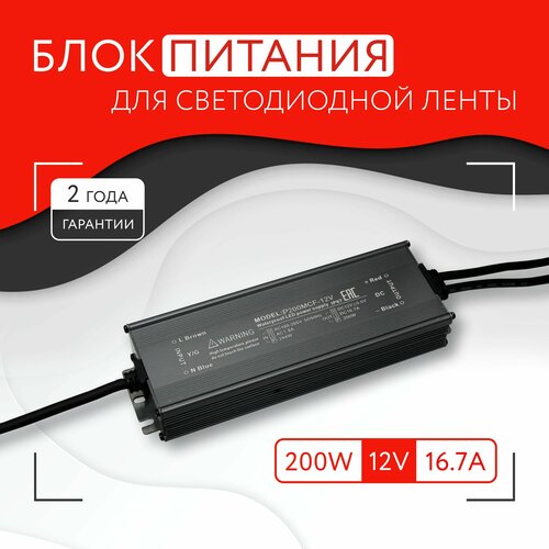 Блок питания для светодиодной ленты (200W, 12V, IP67)