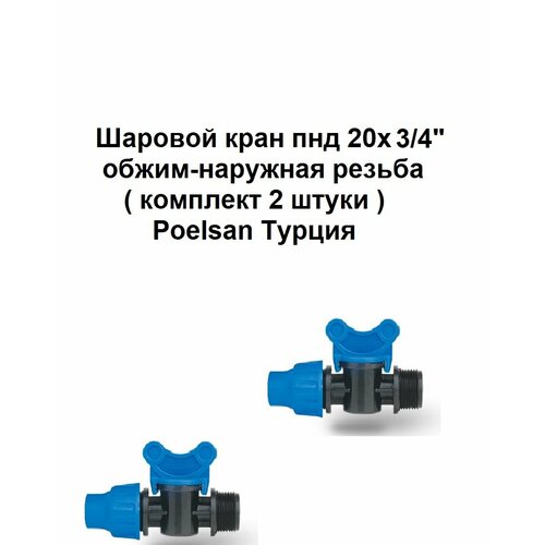 Шаровой кран пнд 20х3/4 обжим-наружная резьба комплект 2 штуки Poelsan Турция