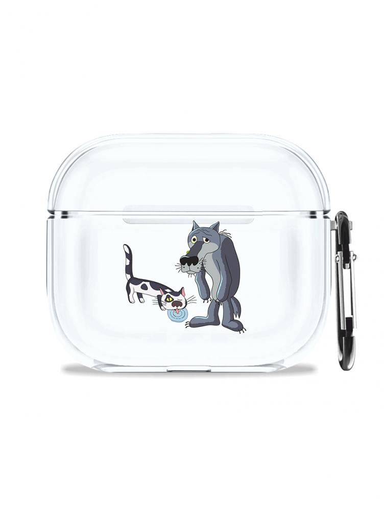 Protective Case Cover For AirPods 3 With Keychain Once Upon, a Dog: Cat and wolf