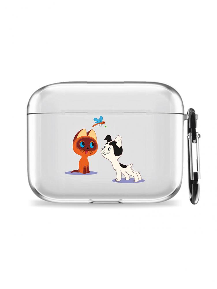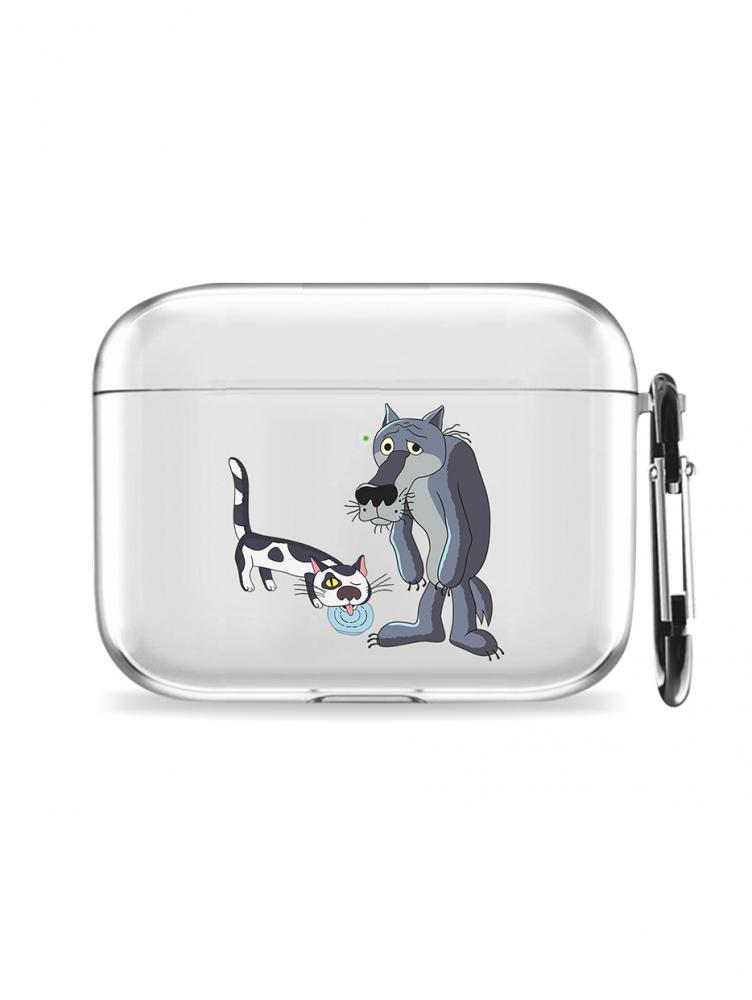 Protective Case Cover For AirPods Pro With Keychain Once Upon, a Dog: Cat and wolf