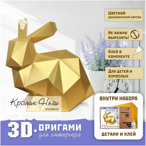 Бумажный конструктор оригами Paperraz фигура "Кролик Няш" золотой