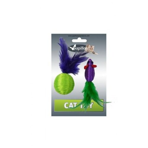 Papillon игрушка для кошек мышка и мячик с перьями 5+4см, нейлон