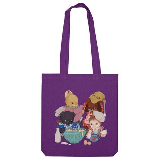 Сумка «Зайчик, котёнок и щенки готовят печенье» (фиолетовый)