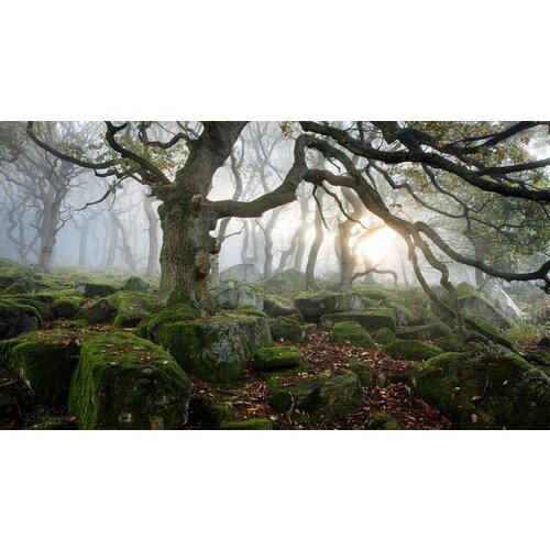 Картина на холсте 60x90 LinxOne "Камни мох Peak District Derbyshire" интерьер для дома / декор на стену / дизайн