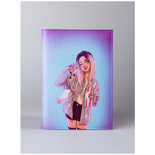 Обложка для паспорта из кожи с изображением девушки