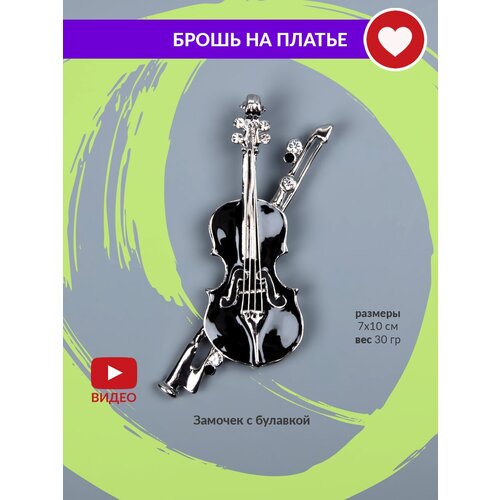 Брошь бижу Скрипка или виолончель эмалированная серебристого цвета