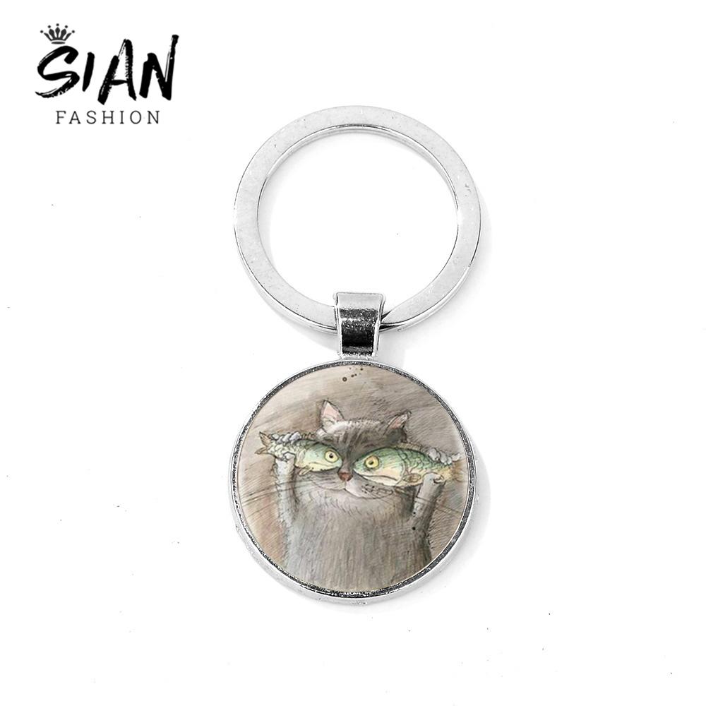 Мультфильм Кошка Рыба Брелок Японский стиль Симпатичные узоры Стекло Кабошон Купол Сплав Брелок Животные Ювелирные изделия Подарок Сыщик