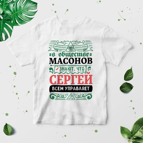 Футболка С принтом В обществе массонов знают ЧТО сергей