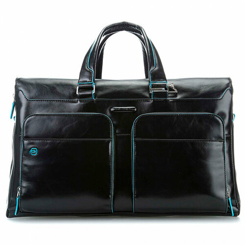Сумка дорожная PIQUADRO, натуральная кожа, 21.5х29х47 см, ручная кладь, отделение для ноутбука, опорные ножки, плечевой ремень, водонепроницаемая, черный