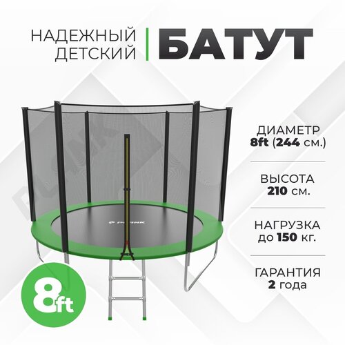Батут уличный PLANK 8ft Eхternal (Green) диаметр 244 см, с защитной сеткой для улицы
