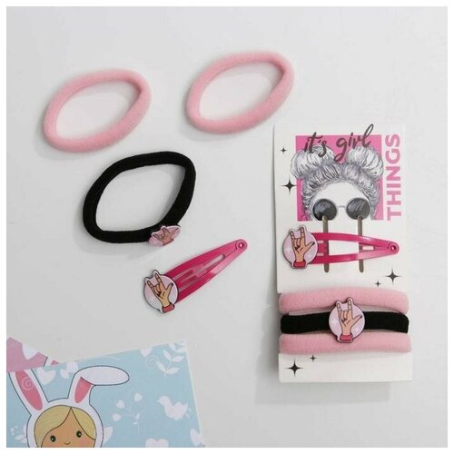 Набор: заколка и резинка для волос "It`s girl things", d 3,5 см