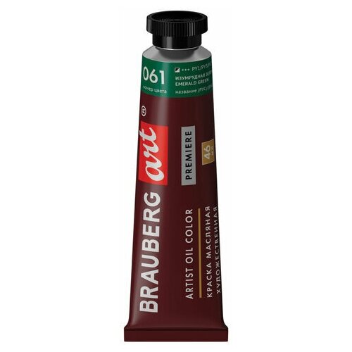 Краска масляная Brauberg Art Premiere, 46 мл, изумрудная зеленая