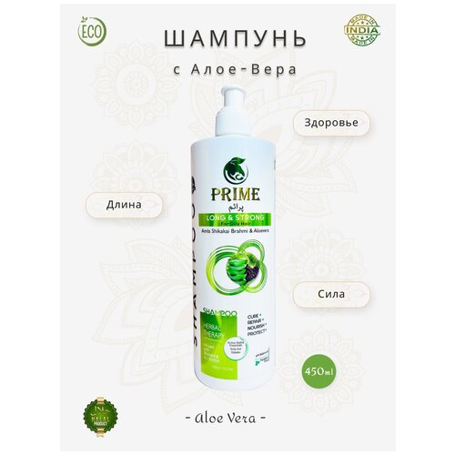Шампунь для здоровья, силы и длины волос, с шикакай брахми и алое-вера, 450 мл. Prime, Индия.