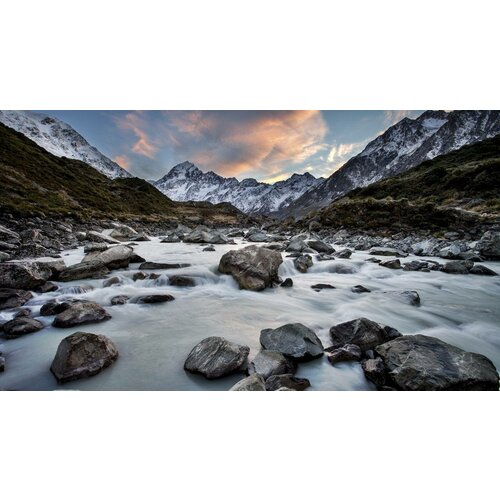 Картина на холсте 60x110 LinxOne "Path to Aoraki Mount Cook" интерьер для дома / декор на стену / дизайн